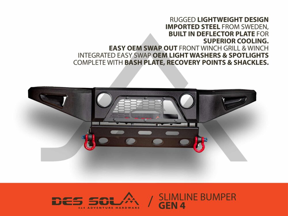 Our Jimny Gen 4 Slimline Bumper & Tow Bar is also e-coated and powder coated to ensure the best 4×4 protection available both locally and internationally.